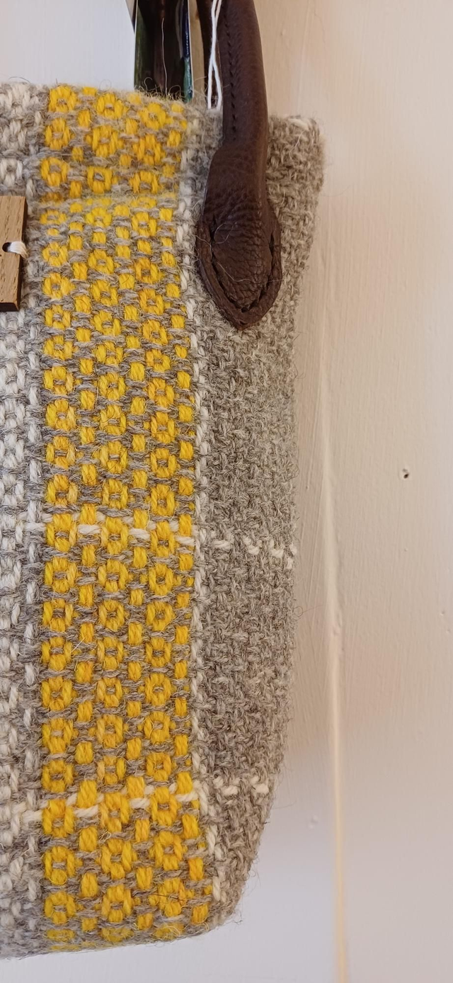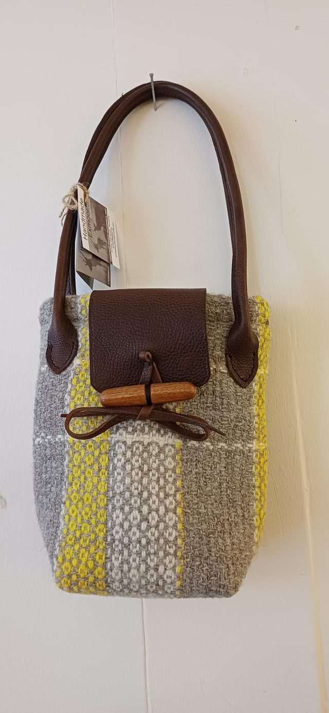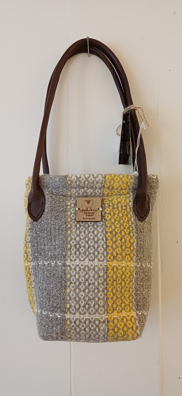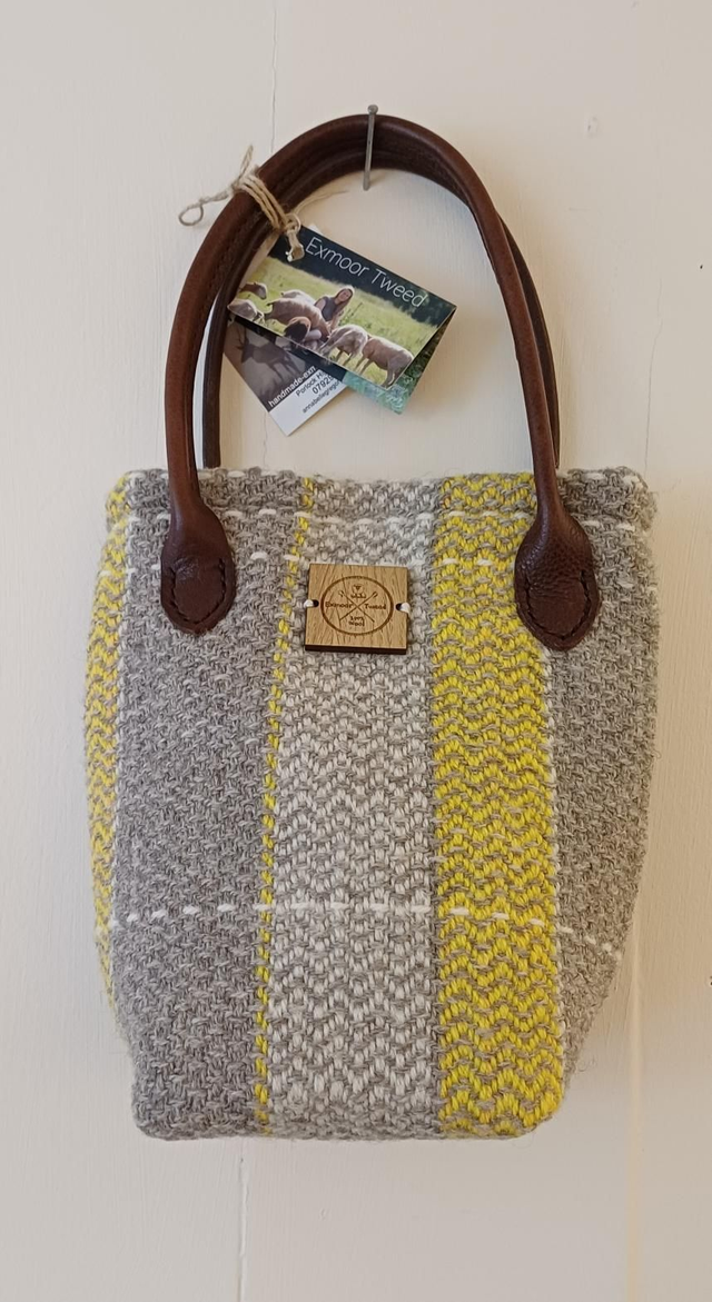Beautiful Exmoor Tweed sholder bag handmade and woven by myself from 100% wool from my flock on Exmoor. The bag is cotton lined with sheep fabric and handmade soft leather handles from my amazing leather lady Katrina.
