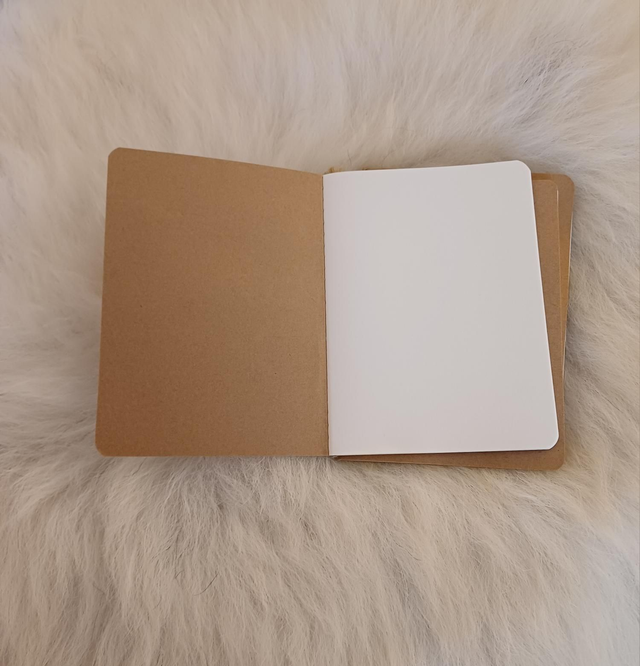 10cmx14cm plain paper inside. Aprox 32 pages.